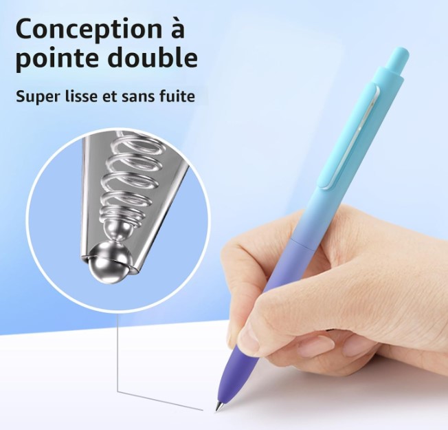 WRITECH Stylos à encre gel à pointe fine : 0,5 mm rétractables encre noire sans bavure avec corps de stylo de couleur dégradée esthétique pour tenue de journal prise de notes couleur assortie