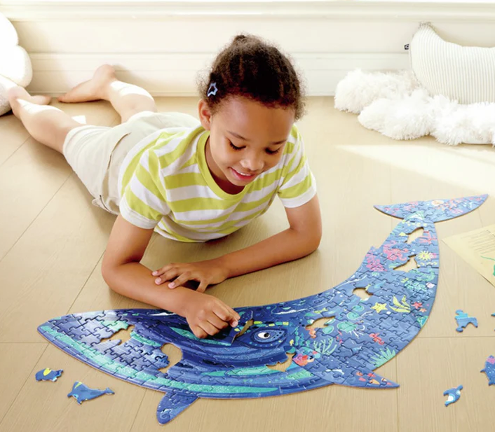 Plongez dans le plaisir en famille avec le puzzle de sol scintillant Humpback Whale ! Ce puzzle de 200 pièces, en forme de baleine majestueuse et comprenant des pièces en forme d'animaux marins, combine le jeu et l'apprentissage de la vie marine. Fabriqué à partir de carton durable et de qualité supérieure avec une finition scintillante, il encourage la reconnaissance des formes, la concentration et la résolution de problèmes. Caractéristiques PUZZLE GÉANT BALEINE : Avec ses 200 pièces, ce puzzle forme la silhouette d’une baleine ! Il met en valeur les caractéristiques impressionnantes de la baleine, éveillant la curiosité et l’imagination des enfants, tout en les aidant à en apprendre plus sur la faune marine fascinante. ILLUSTRATIONS DÉTAILLÉES : Les pièces du puzzle sont magnifiquement illustrées avec des détails raffinés, offrant une expérience de jeu stimulante et captivante. QUALITÉ DURABLE : Fabriqué en carton de qualité supérieure, ce puzzle dispose de pièces épaisses et solides qui s’emboîtent de manière sécurisée, garantissant une longue durée de vie et des heures de jeu. DÉFI ENRICHISSANT : Ce puzzle offre bien plus qu’un simple divertissement, il améliore la coordination œil-main, la concentration et la pensée logique des enfants, renforçant leur confiance à chaque pièce assemblée. POSTER ÉDUCATIF INCLUS : Plongez dans le monde des animaux marins grâce à un poster inclus, rempli de faits fascinants, inspirant ainsi les enfants à explorer et à en apprendre toujours plus.