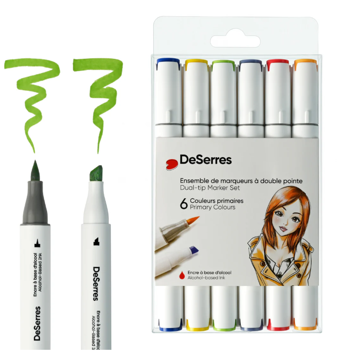 Ensemble marqueurs alcool double pointe, couleurs primaires - 6 pièces