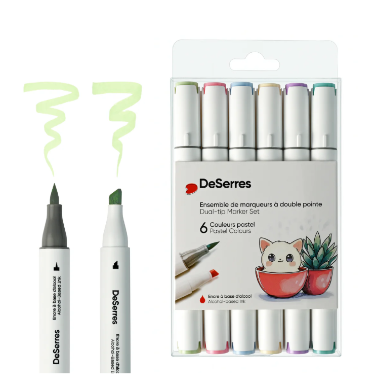 Ensemble marqueurs alcool double pointe, couleurs pastels - 6 pièces