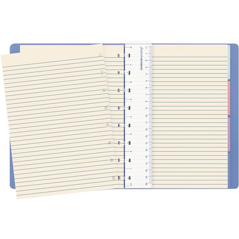 Couverture en simili cuir avec reliure à double fil. La couverture renforcée peut même se plier sur elle-même. Reliure double-spirale. Les pages peuvent être facilement ajoutées, supprimées ou repositionnées. 112 feuilles lignées, papier crème. Index, pochette de rangement et signet déplaçable. Postconsommation : 30 %. Taille A5: 8-1/4 x 5-3/4".
